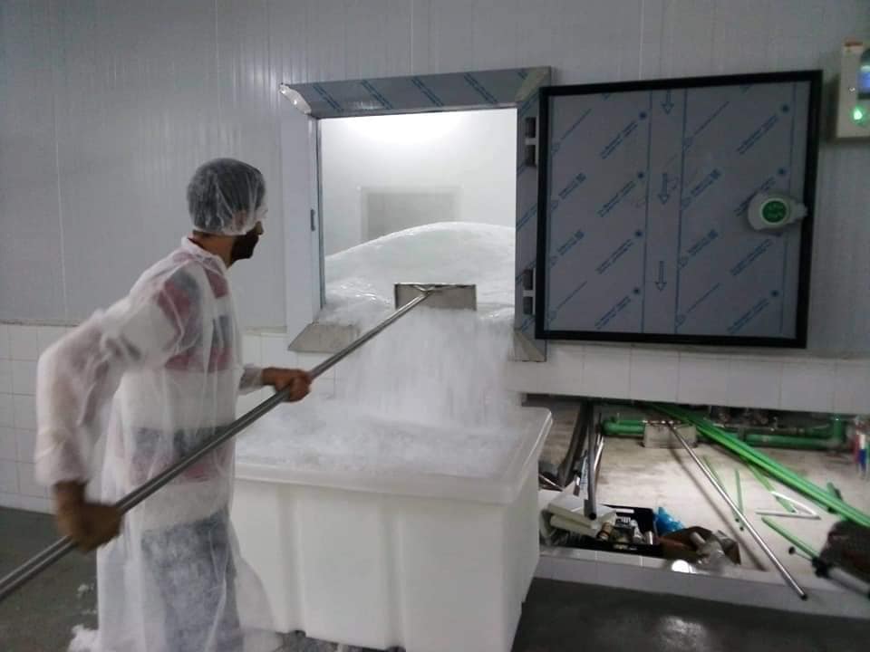Nos machines à glace en écailles, spécialement conçues pour des applications commerciales et industrielles, permettent de produire de la glace en écailles à partir d’eau douce ou d’eau de mer. La glace en écailles se présente sous forme de morceaux plats, fins et larges. Elle est principalement utilisée dans les industries de la pêche et du refroidissement du béton.